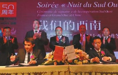 昨日,“法国西南”与成都森宇集团签订中国大西部合作协议,即将以成都为中心,辐射至川、云、贵、藏、桂、渝,向中国西南地区提供法国西南125个酒庄的450余种葡萄酒,以及近200种美食。